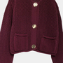 - Features: Chunky knit texture, button-up closure, and front pockets