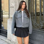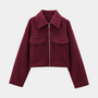 The tailored cropped fit highlights your silhouette, while the flap chest pockets and zip closure add a touch of vintage-inspired detail. Wear it with trousers for a polished city look, or pair with a skirt for a chic, modern edge.