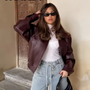 Elegant Leather Jacket – Trendy Cropped Coat