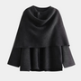 - Features: Built-in scarf design, asymmetrical drape, and long sleeves