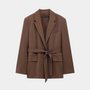 - Fit: Oversized blazer with adjustable tie belt; relaxed wide leg trousers