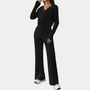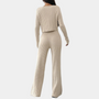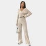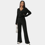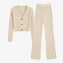 - Features: V-neck button-up cardigan with matching wide-leg trousers