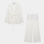 - Features: Lace-up belted blazer with turn-down collar + high-waist wide-leg trousers with zipper closure